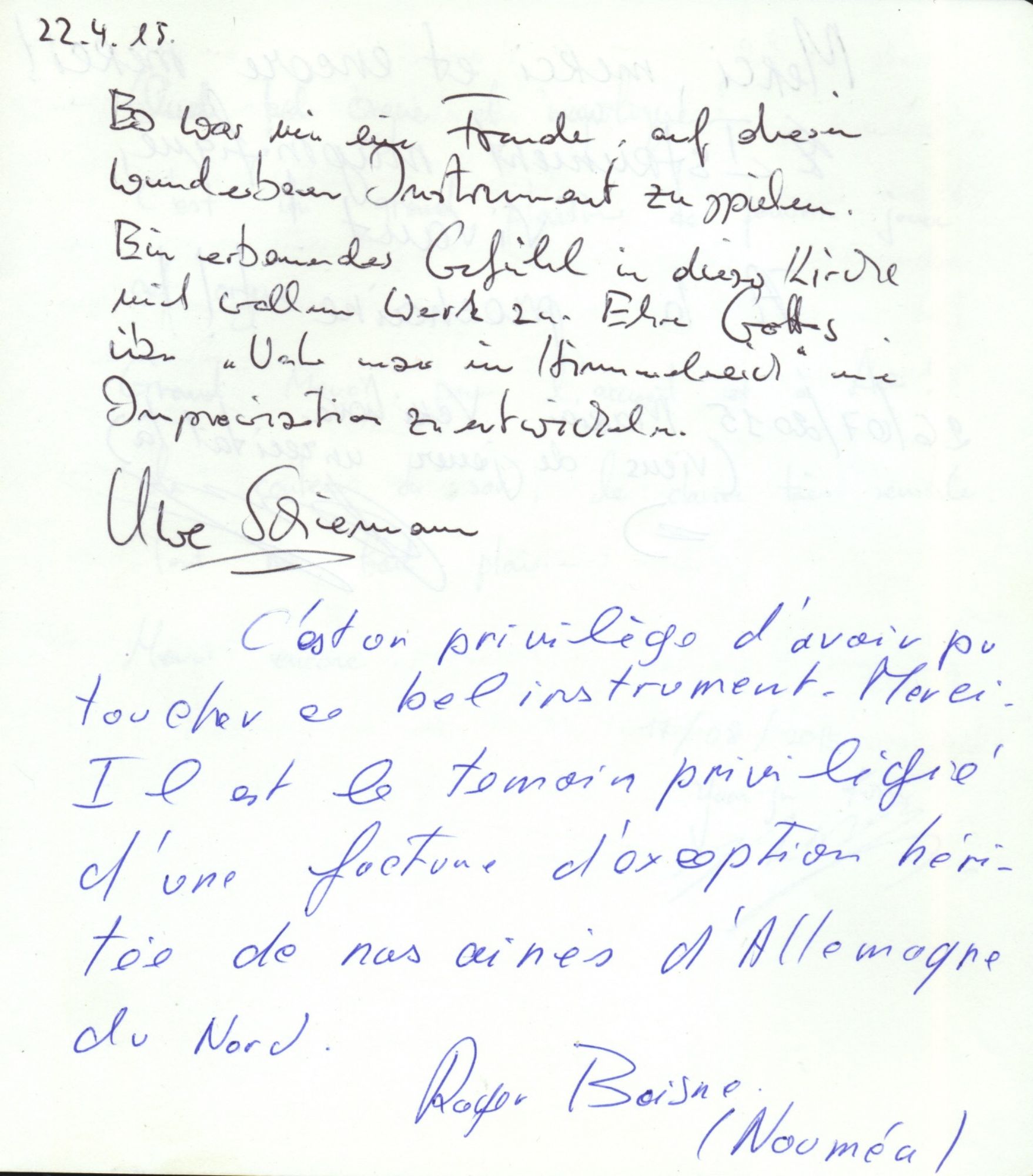 Témoignages plus anciens